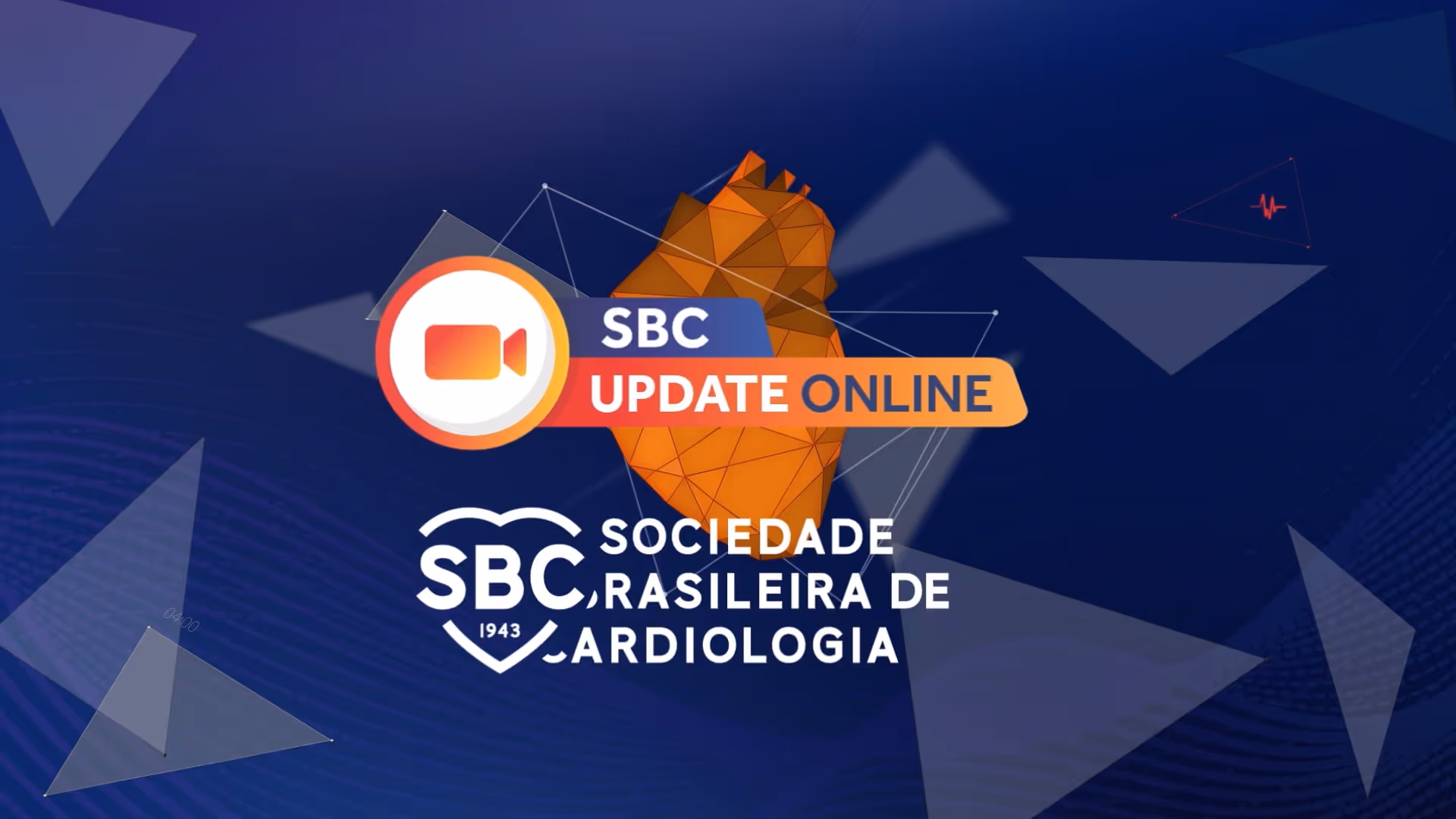 Ícone de câmera de vídeo laranja dentro de círculo com texto SBC UPDATE ONLINE em fundo azul e laranja degradê.